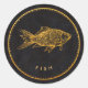 Sie suchen einen schicken, modernen Hochzeitswein für Hochzeitsmahlzeiten? Schauen Sie sich unseren Black and Gold Chic Fish Wedding Food Choice Classic Round Sticker an! Dieser atemberaubende Hochzeitsticker mit fett-moderner Typografie und einem auffallenden digitalen Goldeffekt auf dem runden Rahmen und auf dem Tier. Dieses Design besticht durch Eleganz und Eleganz, ideal für Paare, die einen eleganten, zeitgenössischen Stil suchen. Ideal für ein glamouröses, gehobenes Fest!