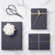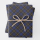 Vintages Bauernhaus Land rustikale Ferien Muster Geschenkpapier Blätter. Dunkelblau, schwarz und goldfarben, traditionelles kariertes Muster, bestehend aus diagonal gekrönten Bändern. Ideal für Weihnachten und die Winterferien.