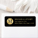 Ein elegantes Schwarz-Gold-Design mit Namen und Adresse im beruflichen Schriftart-Stil mit schwarzem Monogramm auf goldenem Kreis auf schwarzem Hintergrund. Bitte beachten Sie : Die Details der Folie werden im Kunstwerk simuliert. Bei der Herstellung dieses Produktes wird keine Folie verwendet.