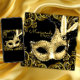 Schwarz-Gold Maskerade Party Einladung mit eleganter Schwarz-Gold Federmaske auf einem schönen schwarz-goldenen Hintergrund. Diese elegante Party Einladung aus schwarz und goldfarbenem Maskerade lässt sich leicht an Ihre Veranstaltung anpassen, indem Sie Ihre Veranstaltungsdetails, den Schriftart, die Größe und Farbe des Schriftartes und den Wortlaut hinzufügen. Sie können auch die Hintergrundfarbe ändern. Das ist ein gedrucktes Design ohne echte Federn, Perlen, Juwelen, Glitzer, etc.