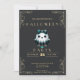 Mit dieser modernen Chalkboard-Party Einladung laden wir Sie zu einem verspielten und stilvollen Halloween-Fest ein. Der schwarze Chalkboard-Hintergrund Set einen unheimlichen und dennoch eleganten Ton, während das aufwändige Scrollwork in jeder Ecke eine raffinierte Touch verleiht. Der Goldtext Pop vor dunklem Hintergrund und sorgt dafür, dass Ihre Party-Details klar und auffällig sind. Im Mittelpunkt des Designs steht ein super hübscher Geist, gekleidet in einer lebhaften Mischung aus Grün, Rosa, Schwarz und Weiß. Hinzu kommt ein schwarzer Bogen, der mit grünen Schädeln dekoriert ist und dem Geist einen spielerischen, aber auch unheimlichen Flair verleiht. Die farbenfrohe und moderne Gestalt des Hauses ist perfekt, um ein festliches und unterhaltsames Ambiente für Ihr Halloween-Party zu schaffen. Die Rückseite der Einladung setzt das elegante Chalkboard schwarz Thema fort und sorgt für ein durchgehendes und poliertes Finish. Diese Einladung verbindet Halloween-Magie und stilvolles Design und wird Ihre Gäste für eine Nacht begeistern, in der sich lustige Lacher und wunderbare Überraschungen erfreuen!