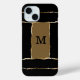 Schwarz und Gold Glitzer Funkelmuster monogramm iPhone 15 Gehäuse, erstellen Sie Ihre eigene