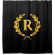 Schwarz-Gold-Laurel-Wreath-Monogramm Duschvorhang