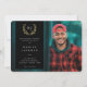 Eine elegante, moderne, geschlechtsneutrale Abschluss-Foto-Ankündigung. Mit einem Foto mit Vollblut und Farbüberlagerung und einem Lorbeerkranz. Der Vorlagentext für die Details des Absolventen ist vollständig anpassbar, sodass Größe, Stil, Farbe und Platzierung des Schriftartes geändert werden können. Die Rückseite bietet einen soliden Hintergrund und Vorlagentext für eine längere Meldung. Wenn Sie es vorziehen, keinen Text auf der Rückseite einzufügen, löschen Sie ihn einfach vor der Bestellung. Wenn Sie ein Foto auf der Kartenrückseite bevorzugen, löschen Sie sowohl den farbigen Hintergrund als auch den Vorlagentext und laden Sie Ihr eigenes Foto hoch. Das Design ist in anderen Farben in meinem Laden erhältlich.