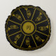 Schwarz-Gold-Motiv mit Trompeten und Monogramm Rundes Kissen