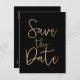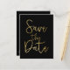 Schwarz & Gold SAVE THE DATE Script Typ Postcard. Die Rückseite ist eine beliebige Farbe, ebenso wie der Text.