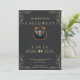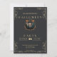 Dieses Halloween-Party verbindet atemberaubend Eleganz und Lustigkeit mit einem faszinierenden Design vor einem Hintergrund aus tiefschwarz. Die Vorderseite ist mit eleganten goldenen Eckrahmen und Schriftzeichen geschmückt, die dem Design eine Touch der Eleganz verleihen. In der Mitte befindet sich ein auffallender, schwarzer Kürbis, der die Bühne des Zentrums beherrscht, umgeben von aufwändigen Rose-Scrollbildern und verstreuten orangen Blätter. Dieses bezaubernde Motiv fasziniert das Wesen Halloween und verspricht eine Nacht des festlichen Vergnügens und der Spannung. Die Farbpalette aus Schwarz, Gold, Rose und Orange schafft einen lebendigen und faszinierenden Look, der perfekt für ein Halloween-Fest geeignet ist. Der schwarze Kürbis, ein klassisches Halloween-Symbol, fügt der Einladung eine Touch von Lustigkeit hinzu, während die Rose Scrolldesigns und orangefarbene Blätter ein Gefühl von Eleganz und Laune verleihen. Zusammen schaffen diese Elemente ein stilvolles und festliches Design, das die Bühne für ein unvergessliches Halloween-Party bildet. Die Rückseite der Einladung setzt das Thema mit seinem eleganten schwarzen Hintergrund fort und sorgt für ein einheitliches und stilvolles Aussehen. Egal ob Sie ein anspruchsvolles Kostümball oder ein Kürbisschnitzereien-Party beherbergen, diese Einladung ist sicher, den perfekten Ton für Ihr Halloween-Fest zu Set. Mit diesem atemberaubenden Halloween-Party laden wir Sie ein, sich zu einem abwechslungsreichen und festlichen Tag zu verzaubern.