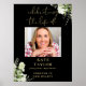 Ein elegantes, schwarzes und goldenes, botanisches personalisiertes Aquarell-Grünpflanzen-Begräbnis-Gedenkfeier-Fotoschild. Entworfen von Thisisnotme©