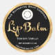 Schwarz-goldenes Lippenbalsam-Etikett mit Logo. Runder Aufkleber