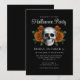 Schwarz-gotische Blumenschädel Halloween Einladung.