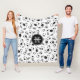 Diese Sportfußballmannschaft-Fleecedecke für Mädchen oder Jungen weist ein Muster von unterschiedlich großen Fußballbällen auf, die in jeder Hinsicht gedreht wurden - einige der schwarzen Tafeln auf den Fußbällen wurden grau aufgefärbt - mit dem Namen des Fußballspielers und der Monogramm- oder Jerseynummer von katz_d_zynes