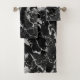 Schwarz-Grau-Glitzer Marmor 2 Badehandtuch Set.