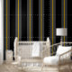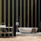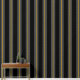 Ein schwarz graues und goldzentriertes ultraleiches, 6 Zoll Markisen Streifen Tapete.