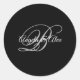 Schwarz-Grau-Weiß-Extravagant-Script-Monogramm Runder Aufkleber