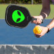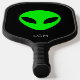 Das einfache 3-Buchstaben-Monogramm wird behalten oder entfernt. Sie können die Farben der Alien Kopf und Augen ... und die schwarze Hintergrundfarbe anpassen. Ein helles, grünes und schwarzes Pickleball-Paddel.