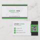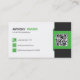 Weißer Hintergrund mit grünen und schwarzen Linien. Auf der Vorderseite sieht man eine verschwommene Weltkarte. Die Rückseite enthält Ihre Informationen und einen QR-Code. Einfach und modern