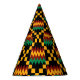 Party Hut mit Kente Tuch-Muster in Schwarz, Rot, Grün und Gelb. Personalisierbar. Ideal für Kwanzaa Feiern.