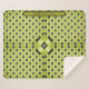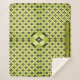 Diese mittelgroße Sherpa-Decke ist ein schlichtes, elegantes Design mit einem kleinen weißen Rautenmuster, umgeben von sanften grünen und schwarzen Farben. Ein Textbereich auf der Seite dient zur Personalisierung, wie Sie möchten.