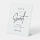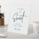Direkt zum Desserttisch oder zur Süßigkeiten-Bar mit diesem schlichten Podestschild mit "Liebe ist süß, bitte eine Leckerei" in eleganter handgeschriebener Schrift und klassischer Serifenschrift. Farbe: Asche, ein weiches Schwarz.