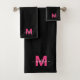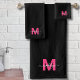Schwarz Heiß rosa Modern Script Name Monogram Badhandtuch Set