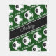 Diese lustige Fußball-Fleecedecke für Mädchen zeichnet sich durch das realistische Bild eines Fußballballs aus, der grün, schwarz und weiß mit dem sportiven Schriftart-Satz "I LIEBE SOCCER" in Weiß, der sich zwischen den verworrenen Reihen von Fußballbälle erstreckt, gemustert ist - ihren Namen in einem ausgeklügelten handgeschriebenen Schriftart auf einem ähnlich verworrenen, schwarzen Streifen - der Hintergrund ist anpassbar - Katz_d_zynes