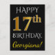Schwarz, Imitate Gold 17. Geburtstag + Individuell Postkarte