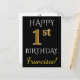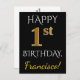 Schwarz, Imitate Gold 1. Geburtstag + Individuelle Postkarte