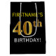 Schwarz, Imitate Gold 40. Geburtstag + Individuell Mittlere Geschenktüte