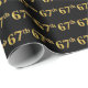 Dieses Verpackungspapierdesign weist die Ordnungsnummer "67." mit einem goldähnlichen Imitat/Imitation auf. Es hat auch einen schwarzen Hintergrund. Es kann zum Umpacken eines Geschenks verwendet werden, das für den siebzigsten Geburtstag eines verheirateten Ehepaares, vielleicht für den siebenundsechzigsten Hochzeitstag, oder für andere 67. [~Z0000019]