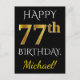 Schwarz, Imitate Gold 77. Geburtstag + Individuell Postkarte
