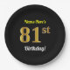 Schwarz, Imitate Gold 81. Geburtstag + Individuell Pappteller