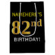 Schwarz, Imitate Gold 82. Geburtstag + Individuell Mittlere Geschenktüte