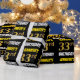 Dieses Packpapier-Design enthält eine Nachricht wie "JENNIFER'S 33. BIRTHDAY!", mit dem "33.", der ein goldenes Imitat/Imitation-farbiges Aussehen hat, und mit dem Namen und "BIRTHDAY" in einem lustigen, kühlen Schriftart. Der Name ist anpassbar, der Hintergrund ist schwarz. Papier wie dieses könnte vielleicht benutzt werden, um Geburtstagsgeschenke zu verpacken, die jemandem anlässlich seines dreißigsten Geburtstages geschenkt werden. [~Z0000203]