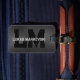 Bild eines schwarzen irisierenden Hintergrunds mit einem Monogramm in schwarz und Text in weiß. Modernes männliches Design.