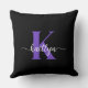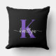 Dieses schlichte, elegante, schwarze 20-Zoll-Kissen mit Ihrem Vornamen in einem trendigen Script-Schriftart in Weiß und Ihre erste Initiale in einem modernen lila Cap-Schriftart ist perfekt für Sie. Es ist stilvoll und trendig und dennoch sehr klassisch. Es wird fantastisch aussehen in Ihrem Schlafzimmer, Wohnzimmer, Aussichtsterrasse, sie vergossen.