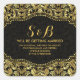 Schwarz-Metall-Gold-Floral-Damaskus 2 Muster Quadratischer Aufkleber