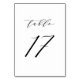 Tabelle 17. Elegante Tischnummern mit schwarzem minimalistischem Schrift. Diese schwarz-weiße Tischnummer ist ideal für Hochzeiten, Abschluss, Babyduschen, Brautpartys und andere Veranstaltungen. Weitere Nummern und Farben sind verfügbar.