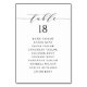 Anpassbare Sitzpläne für die Tischnummer. Es enthält ein schwarzes whimsical Skript und klassische Typografie. Personalisieren Sie Ihre persönlichen Daten, indem Sie Ihre eigenen Daten hinzufügen. Dieser minimalistische Tisch ist perfekt für Hochzeiten, Babyduschen, Brautpartys, Geburtstage und vieles mehr.