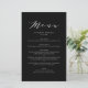 Individuell anpassbare Script-Menükarte mit elegantem Skript, einfacher Typografie und Streifen Muster. Diese Menükarte ist perfekt für jedes Hochzeitsthema und jede Jahreszeit. Personalisieren Sie diese, indem Sie Namen, Datum und Menüdetails hinzufügen.