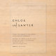 Machen Sie eine kühne und elegante Aussage mit dieser Acrylhochzeit-Einladung mit minimalistischer handgeschriebener Schrift und sauberer Typografie. Das klare Acryl verleiht dem Set neben dem traditionellen Papier ein modernes und erhöhtes Gefühl. Es ist ideal für Paare, die ein elegantes, zeitloses Aussehen gewollt haben. Sie können den Text vollständig aktualisieren, um Ihren Namen, Ihren Hochzeitstag und Ihre Veranstaltungsdetails wiederzugeben. Dieses Stück arbeitet wunderschön auf eigene Faust oder paarweise mit Umschlägen, Perlhüllen oder Wachs-Siegeln.