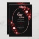 Eine elegante Schwarze Hochzeit rette - die Dattelkarte mit einer rustikalen bordeauxroten Blumenstruktur auf einem ovalen Rahmen.
