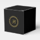 Ein personalisiertes Gefälligkeitskasten in schwarz mit einem Goldlachkranz und einer benutzerdefinierten Monogramm, die Sie mit Ihrem eigenen Monogramm bearbeiten können. Um den Schriftart zu ändern oder das Mono nach dem Ändern neu zu zentrieren, wählen Sie den Button "Anpassen". Diese Gunst-Box ist eine gute Wahl für Empfang, Partys, Firmenveranstaltungen und vieles mehr.