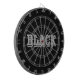 Schwarz mit grauem Text auf schwarzer, solider Far Dartscheibe