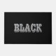 Schwarz mit grauem Text auf schwarzer, solider Far Fußmatte