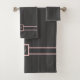Fügen Sie Ihrem Stil ein wenig Schwung mit diesem einfachen, klassischen Pinstripe Muster mit einem tiefen schwarzen Kohlesockel und einem blassrosa Akzent Streifen. Passen Sie das Monogramm auf der Hand und das Badetuch für eine einzigartige Dekoration für Ihr Bad an. Diese Gegenstände können als passendes Set oder als Einzelstücke gekauft werden.
