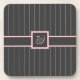 Fügen Sie Ihrem Stil ein wenig Schwung mit diesem einfachen, klassischen Pinstripe Muster mit einem tiefen schwarzen Kohlesockel und einem blassrosa Akzent Streifen. Passen Sie das Monogramm auf diesem Untersetzer mit Ihrem Initial an, um es zu Ihrem eigenen zu machen.