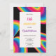 Schwarz mit Regenbogen Groovy Wavy Geburtstagsparty Einladung schwarze Einladung mit mehrfarbigen Lignes und Regenbogenschrift