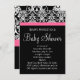 Eleganter schwarzer Hintergrund mit scharfrosa Fuchsia magenta Akzent und schwarz-weißem Damast-Muster. Frische, saubere und elegante Damastakzente und farbige horizontale Akzente. Passen Sie online mit Ihren Mädchen-Dusche-Details an.