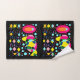 HAND TOWEL DESIGK BLACK with YELLOW PINK BLUE DIAMONONONS AND GLOBES
