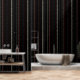 Schwarz mit roten und weißen Pinstreifen Tapete